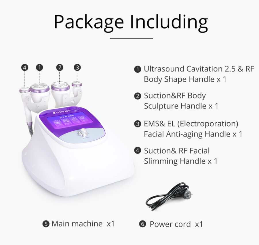 The working principle of the S Shape cavitation 2.5 machine is to send ultrasonic waves deep into the skin to break down fat cells. Then, your lymphatic system absorbs those stingy fat cells and converts them into waste. This s shape body contouring machine can also be used on the face, neck, upper arm, abdomen, buttocks or thigh area.